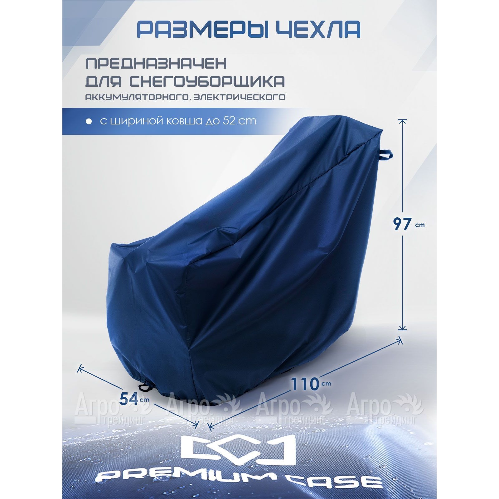 На фотографии Чехол PREMIUM CASE для снегоуборщика аккумуляторного, электрического с шириной ковша до 52 см: