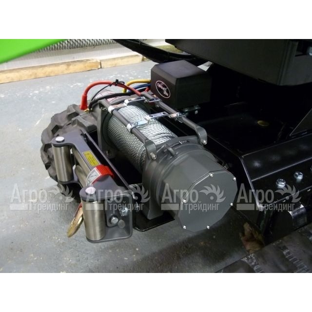 Измельчитель оснащен загрузочным модулем и разгрузочным патрубком, установленных на гусеничной платформе. Привод на вал измельчающего устройства ременной, на подающее устройство и на гусеничное шасси - гидростатический. Для удобства использования имеет угол разворота 120 град. (5 позиций). Установка оснащена системой аварийного отключения двигателя, индикатором зарядки аккумулятора, счетчиком моточасов. Движением агрегата оператор управляет с платформы. Оси гусеничной платформы могут раздвигаться и обеспечивать повышенную устойчивость при перемещении на склонах.