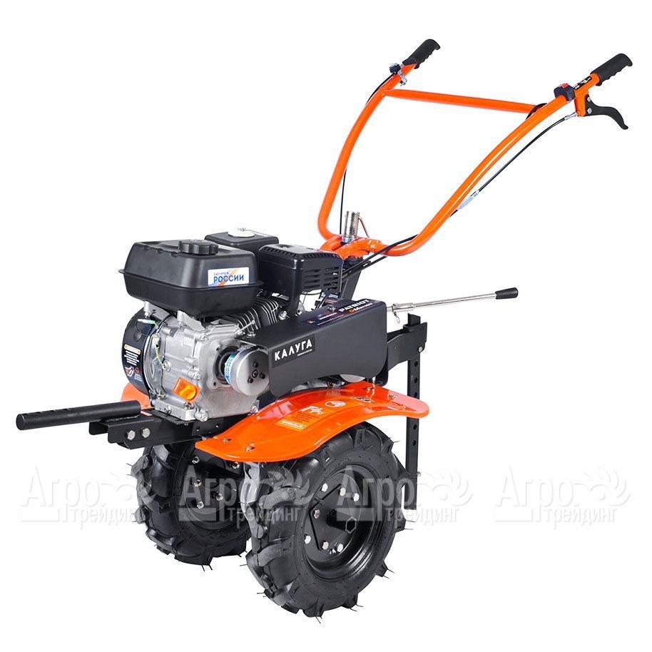 Характеристики товара: Мотоблок Patriot Калуга (без колес), фрезы в комплектеПодробное описание товараМотоблок Patriot Калуга (без колес) предназначен для использования в личном хозяйстве. С его помощью организуют подготовку почвы к посадке культурных растений. С помощью стальных фрез землю рыхлят, подрезая корни сорняков. Наличие сцепного узла позволяет использовать для работы дополнительное навесное оборудование, что значительно увеличивает возможности агрегата. В основе мотоблока лежит мощный двигатель внутреннего сгорания. Мотор всегда легко запускается ручным стартером за минимальное число рывков. Расход топлива небольшой. Ременная передача обеспечивает повышенный моторесурс техники. Несколько скоростей движения вперёд позволяют организовать работу машины с наибольшей эффективностью и комфортом для оператора. Наличие реверса повышает манёвренность техники и даёт возможность обрабатывать землю в условиях ограниченного пространства. К плюсам мотоблока Patriot Калуга относят удобное расположение органов управления, складную ручку, сошник для регулирования глубины рыхления, щитки над фрезами, исключающими попадания комьев земли в оператора.