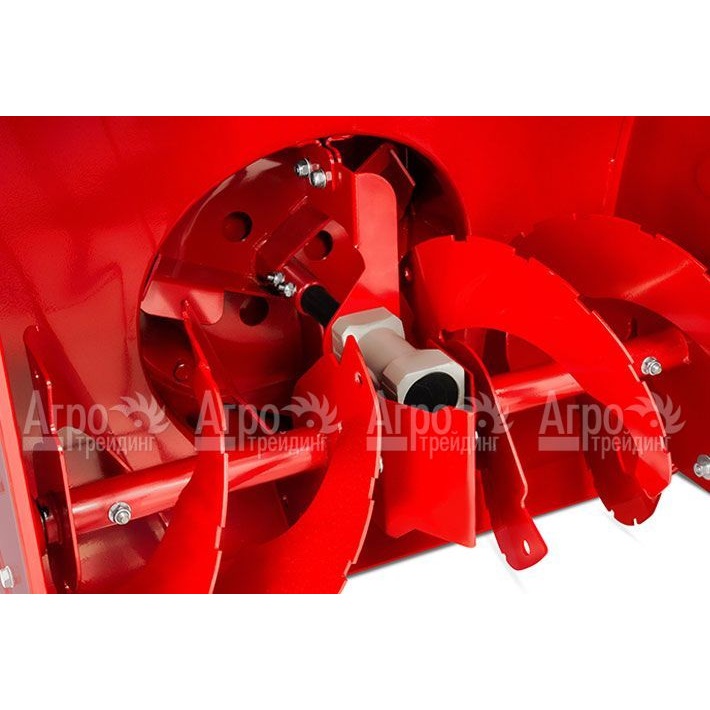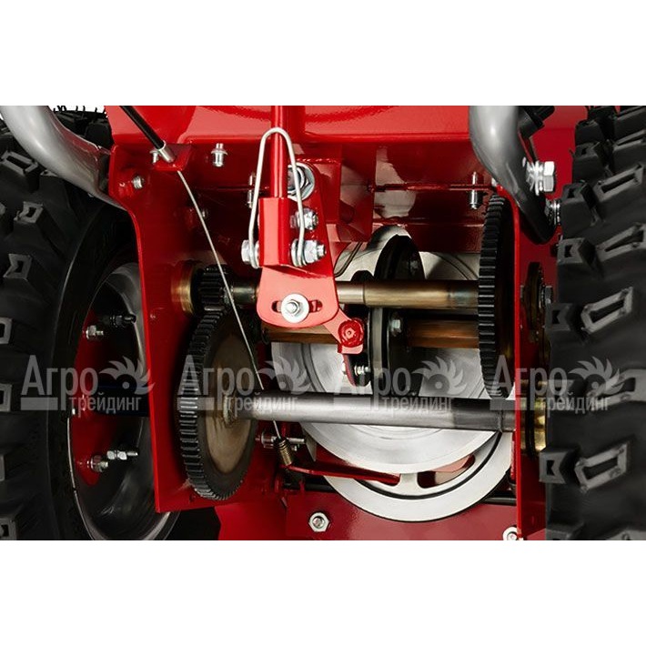 Все узлы снегоуборочной машины изготовлены из металла. В целом применение пластика в конструкции сведено к абсолютному минимуму. Колеса большие, обеспечивающие хорошую проходимость. Двигатель мощный, рассчитанный на длительную непрерывную работу. Здесь также установлен уникальный редуктор, в котором не используется цепь, что повышает надежность агрегата. Сама система сбора снега рассчитана на максимально дальний его выброс.